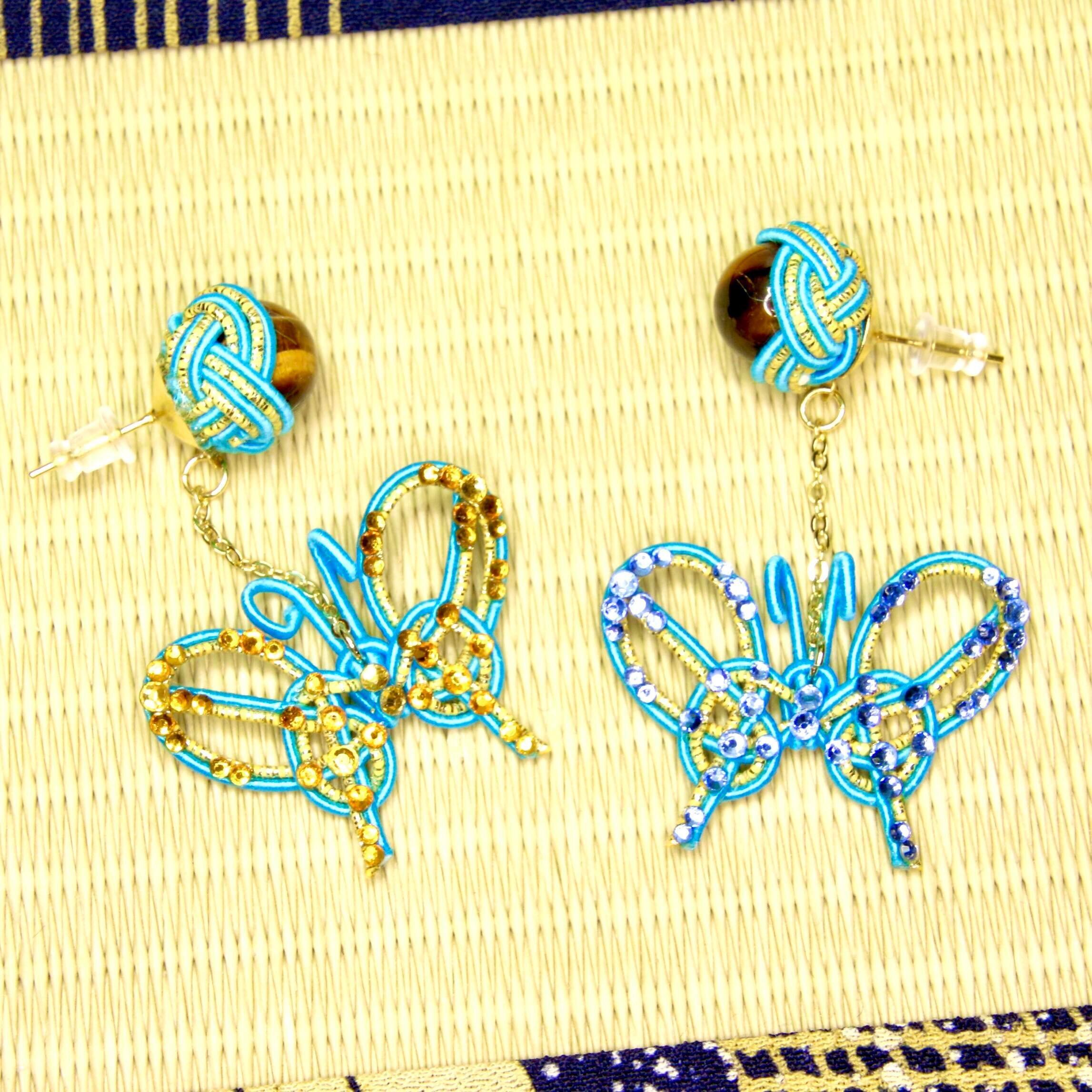 耳元でゆらゆらと舞う、水引アゲハ蝶のピアスです。