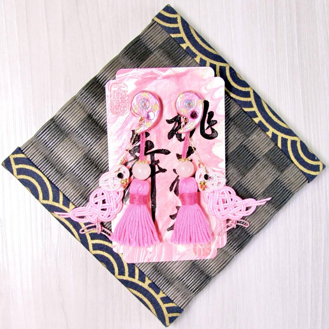 お守りイヤリング【桃花之舞】peach blossom dance